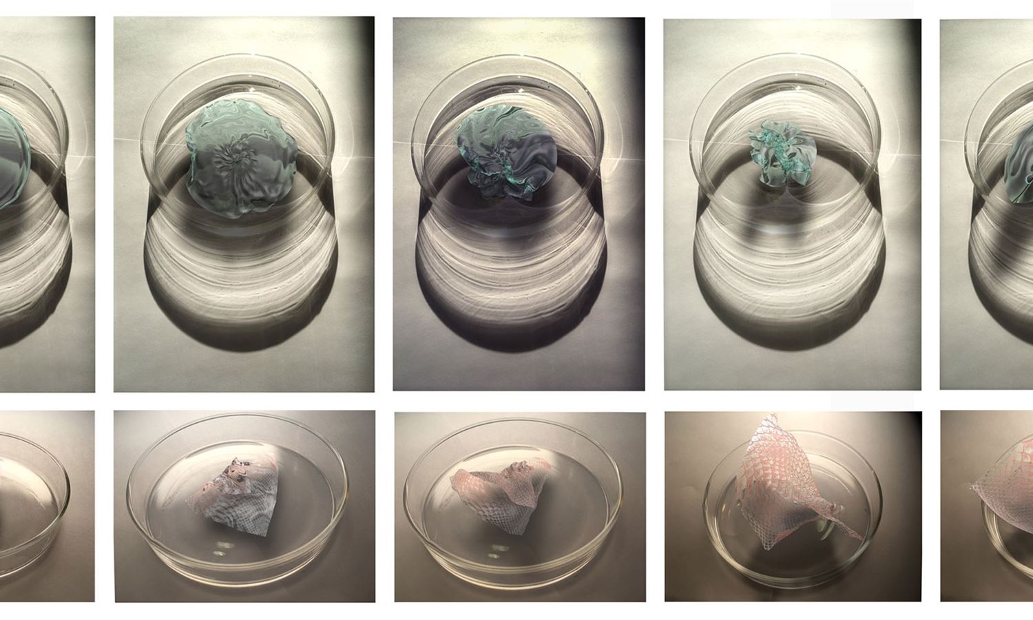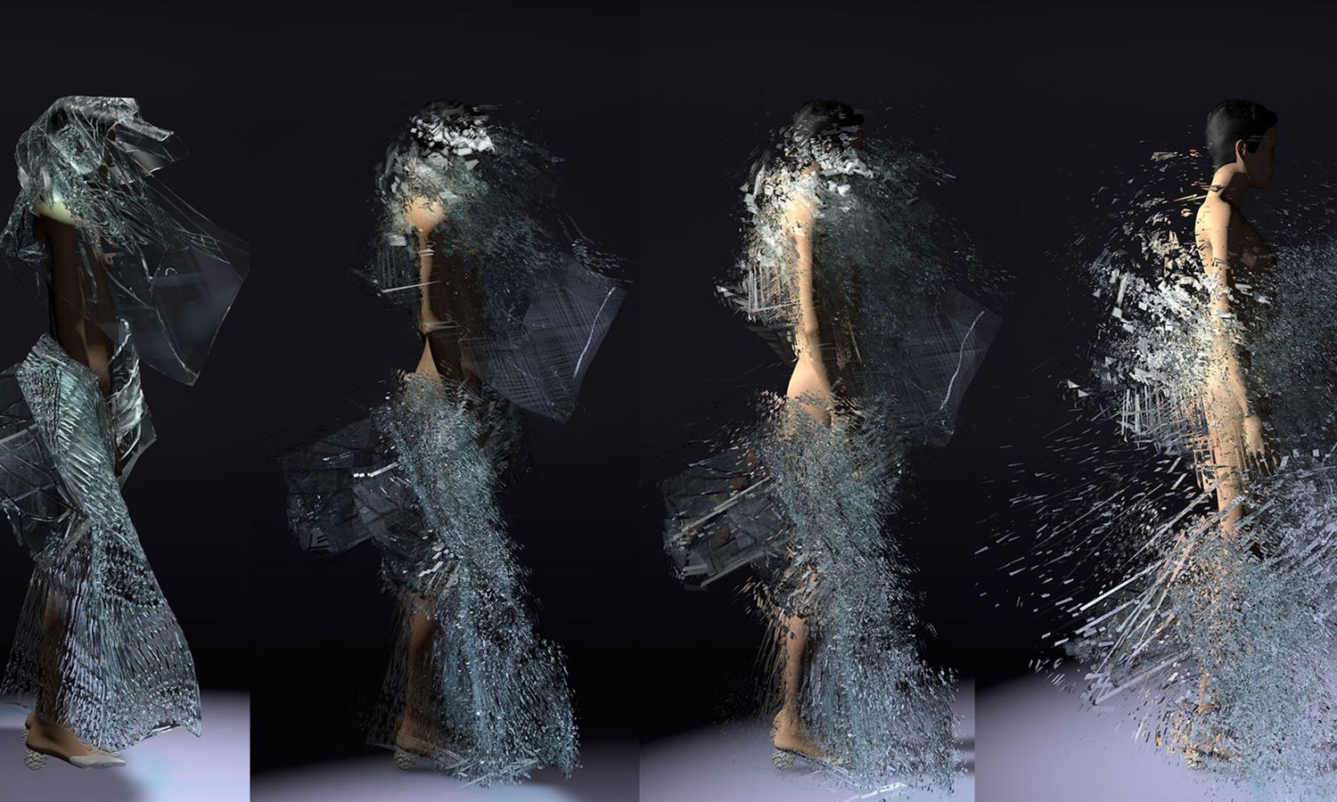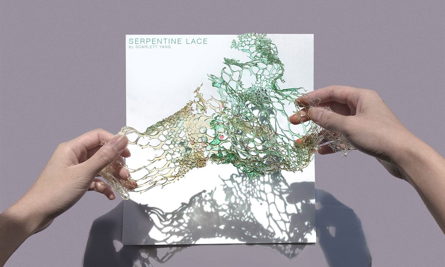 استخدمت سكارليت يانغ ، خريجة جامعة سنترال سانت مارتينز ، مستخلص الطحالب وبروتين شرنقة الحرير لخلق فستان يشبه الزجاج ينمو بمرور الوقت ويمكن أن يتحلل في الماء خلال 24 ساعة.