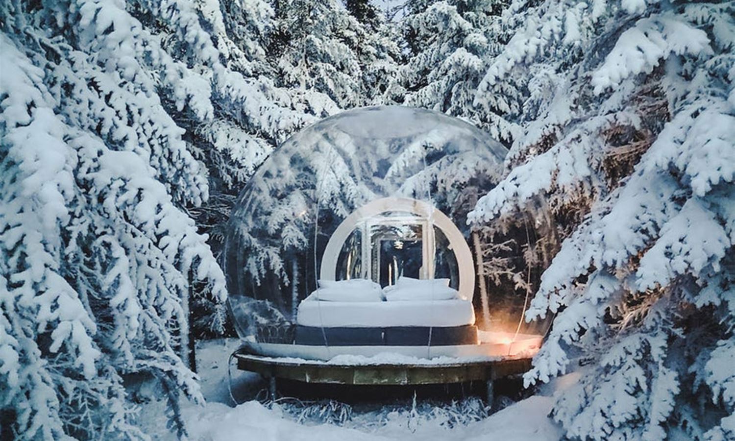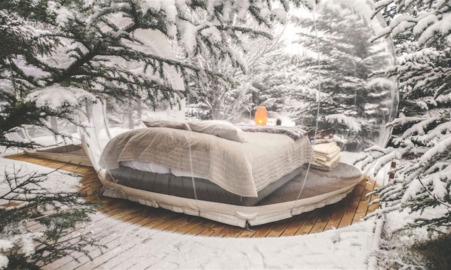 Each bubble is outfitted with a cosy bed and plenty of blankets so you can snuggle in and watch the stars.