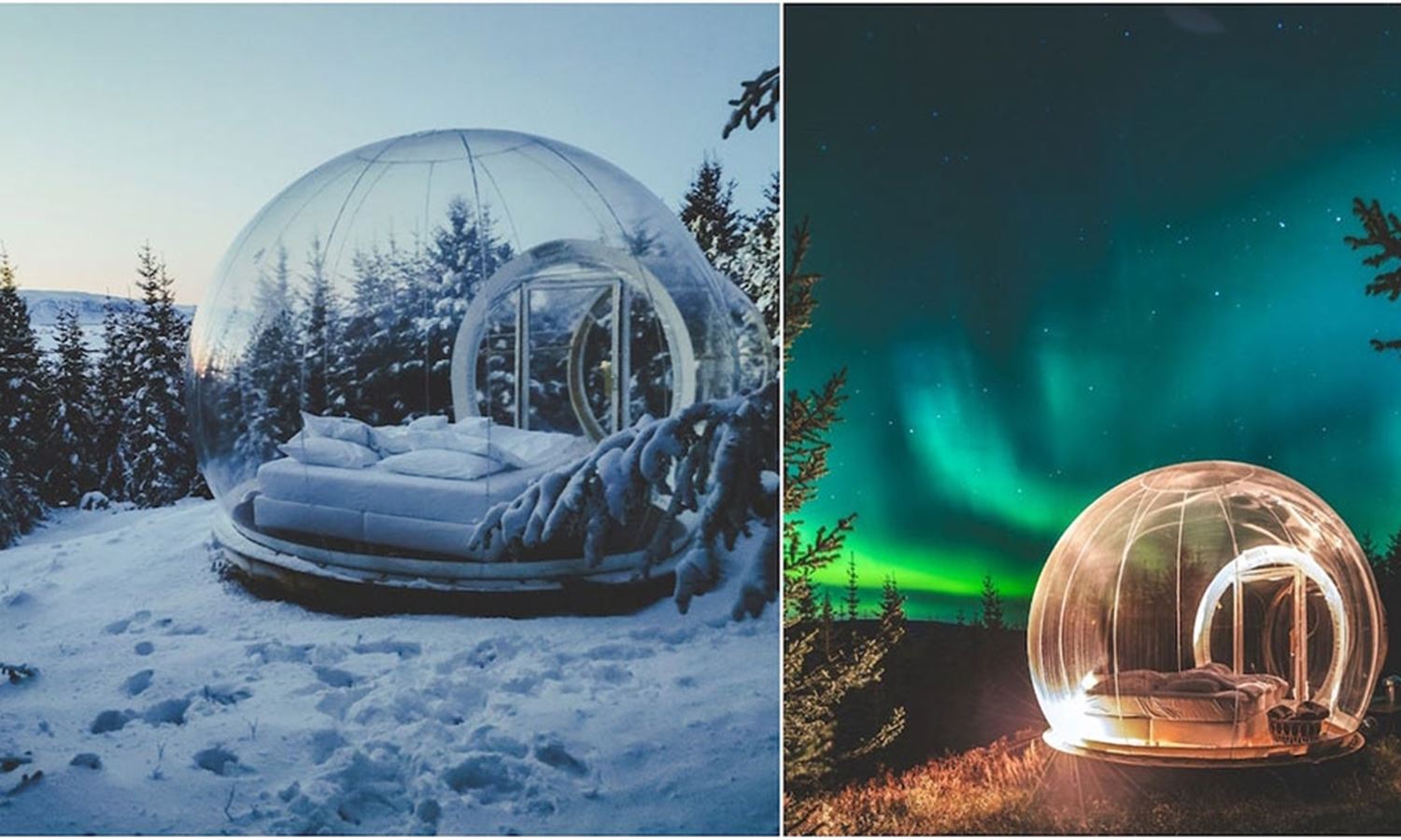 Get back into nature with a night's stay at Iceland's Bubble Hotel, which offers magical clear bubbles with unparalleled views of wild forests, millions of stars, and the midnight sun.