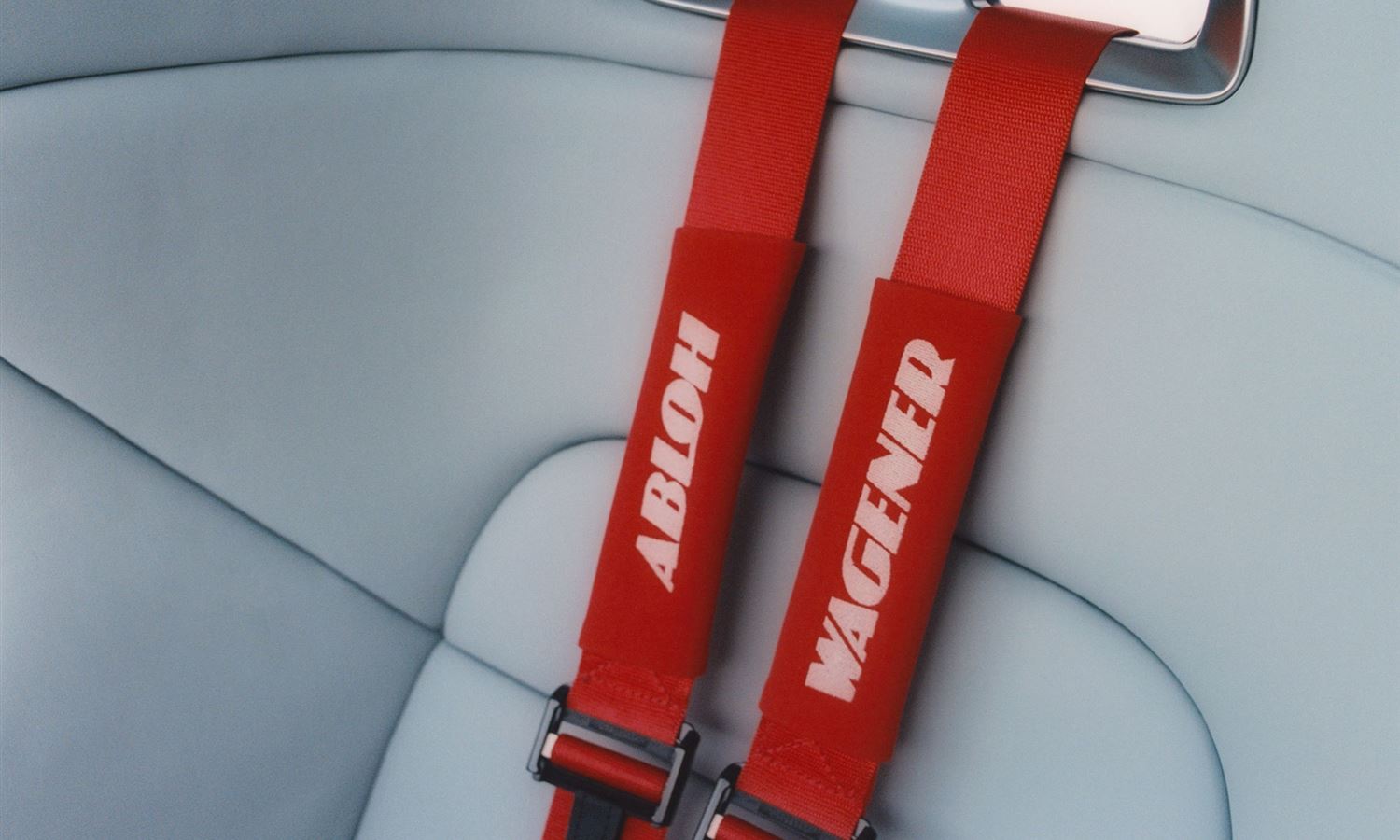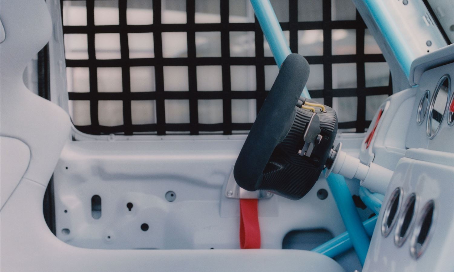 A safety frame, which was coloured baby blue has been added, while bold red pops were used to give the design a racing aesthetic. The five-point seat belts are also bright red and emblazoned with the designers' surnames – Abloh and Wagener.