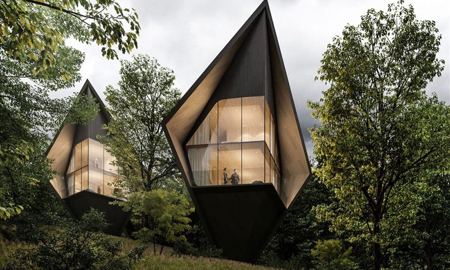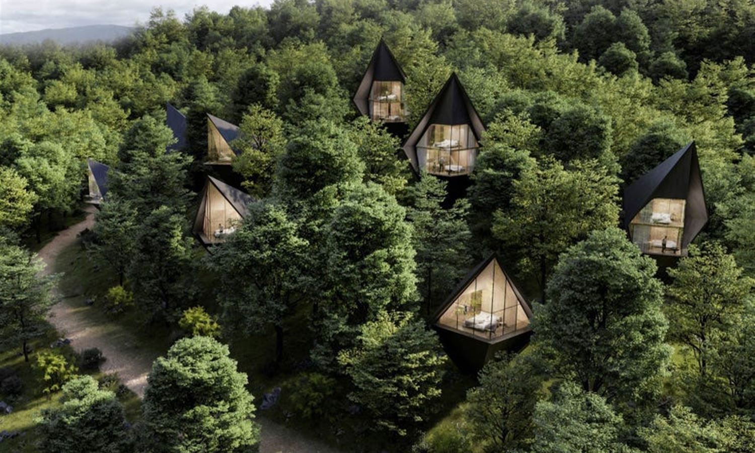 The West Virginia resort will consist of sustainable, diamond-shaped hotel suites scattered throughout a forest as well as spaces that encourage guests to reconnect with nature.