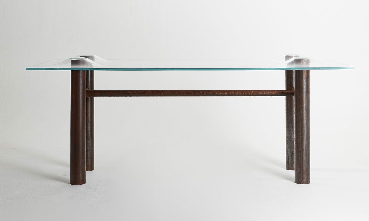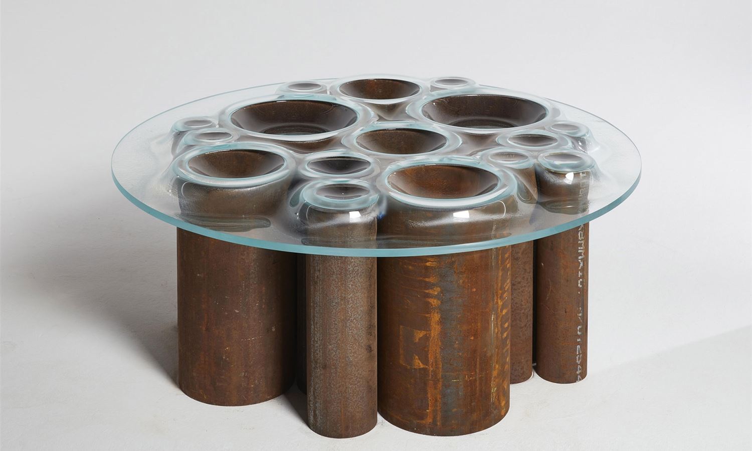 This creates the effect of the table legs being partially vacuum-packed, bringing what the designer describes as an "unexpected softness and fluidity" to the glass sheets.