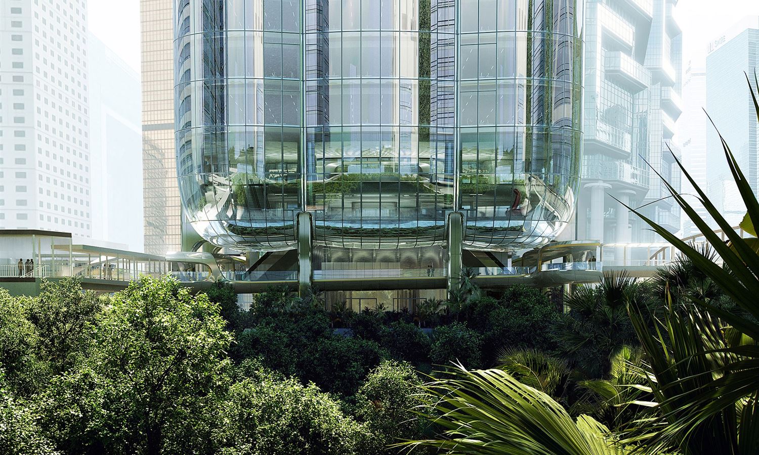 The main body of the skyscraper will be elevated above the ground and connected into the city's network of raised pedestrian walkways, with a series of courtyards and gardens placed under the building.