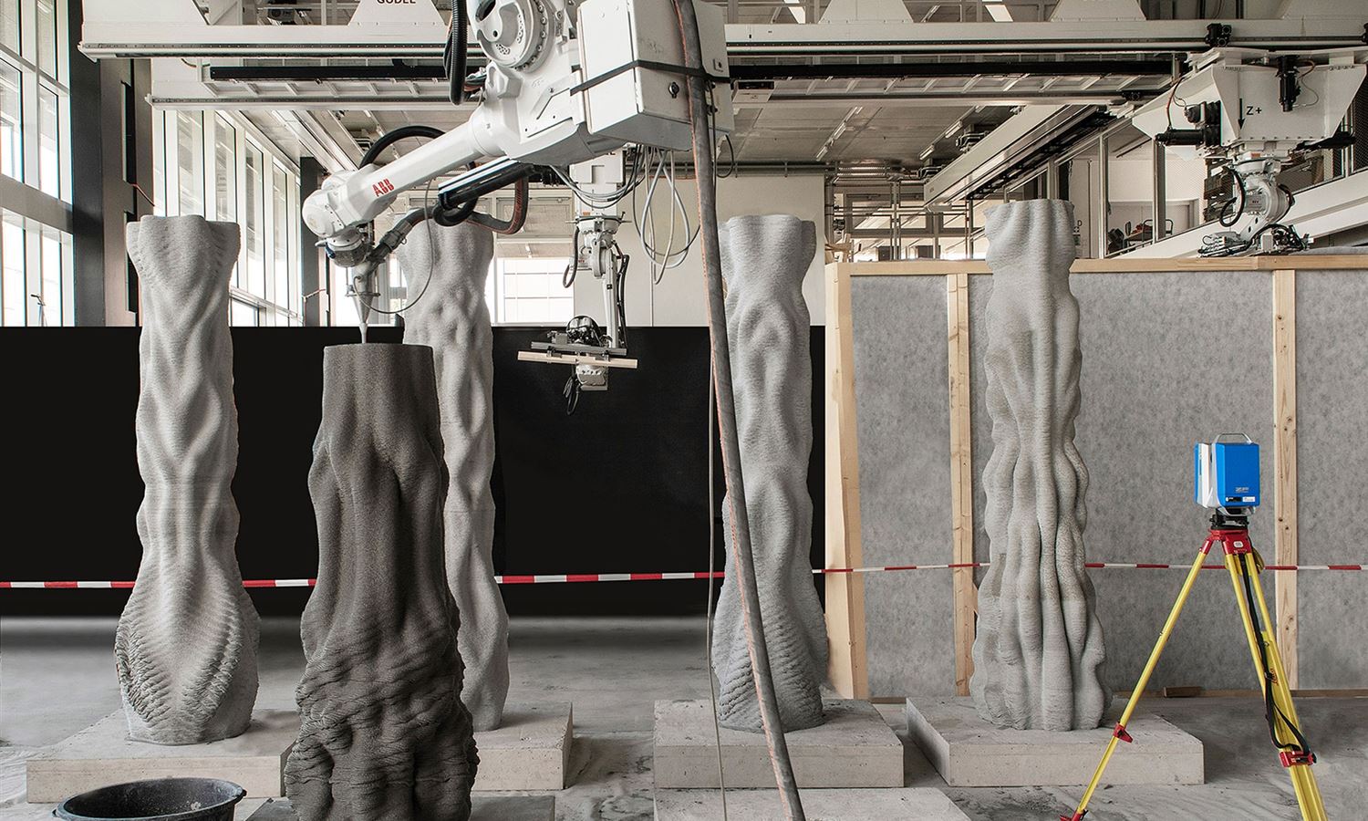 The masters students produced the columns using a new process, developed at the technology school, that allows for the fast 3D-printing of concrete structures completely without formwork or any other kind of mould.
