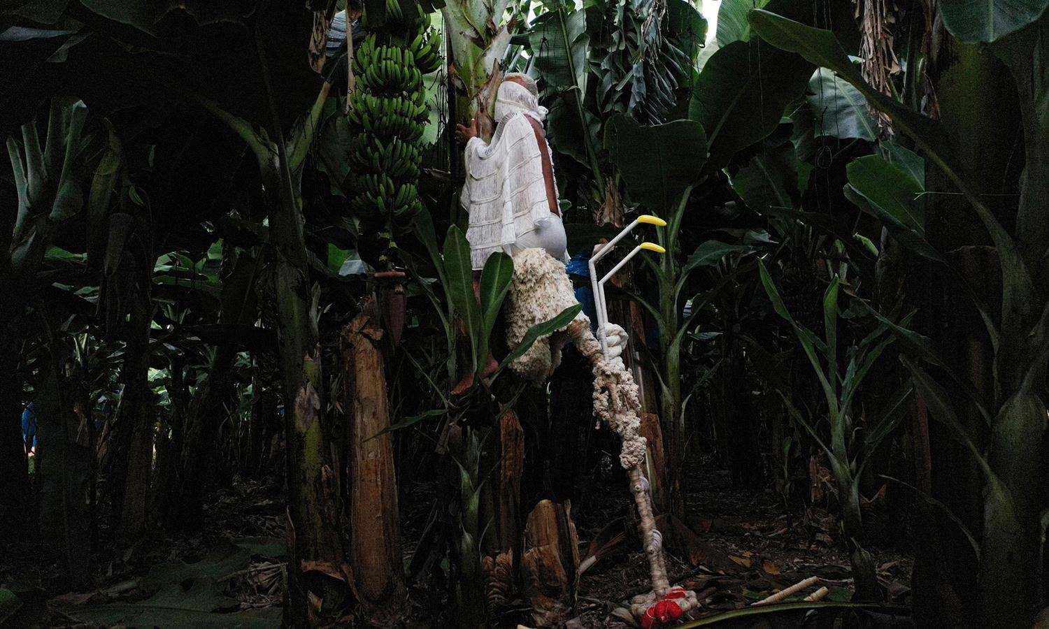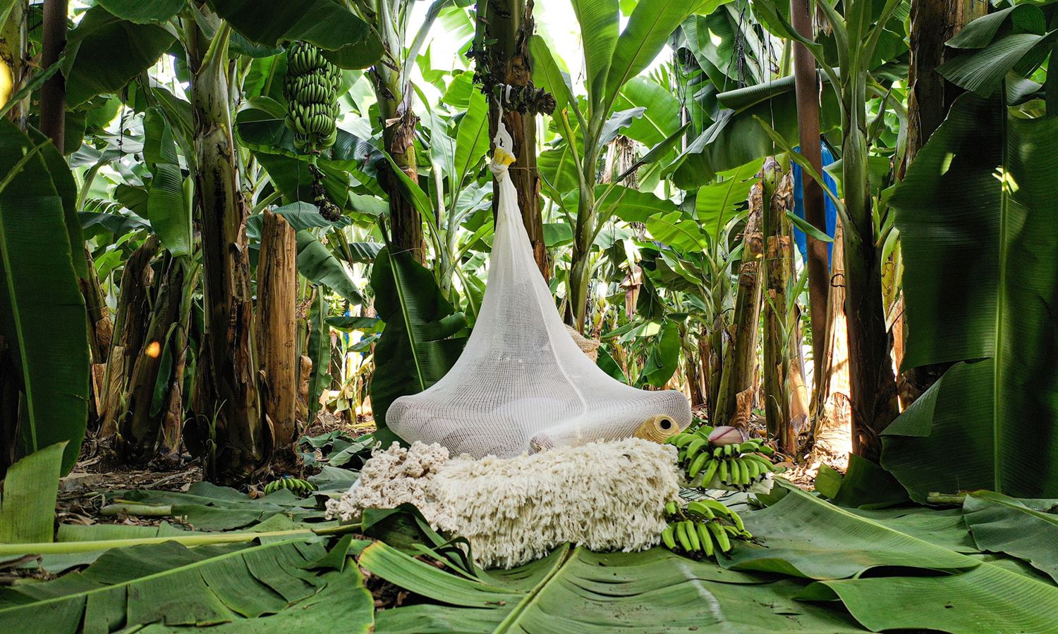 For the project, Nevi Pana imagines banana plants as the only crop being produced in the region. As a result, he created three objects made from materials, such as banana fibre, that he grew himself.