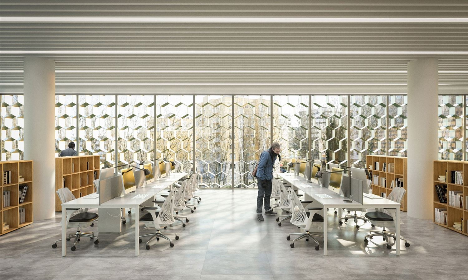 The open-plan office space will be enclosed with glass facades that will be covered in hexagon-shaped cladding and will have several outdoor terraces cut into it.