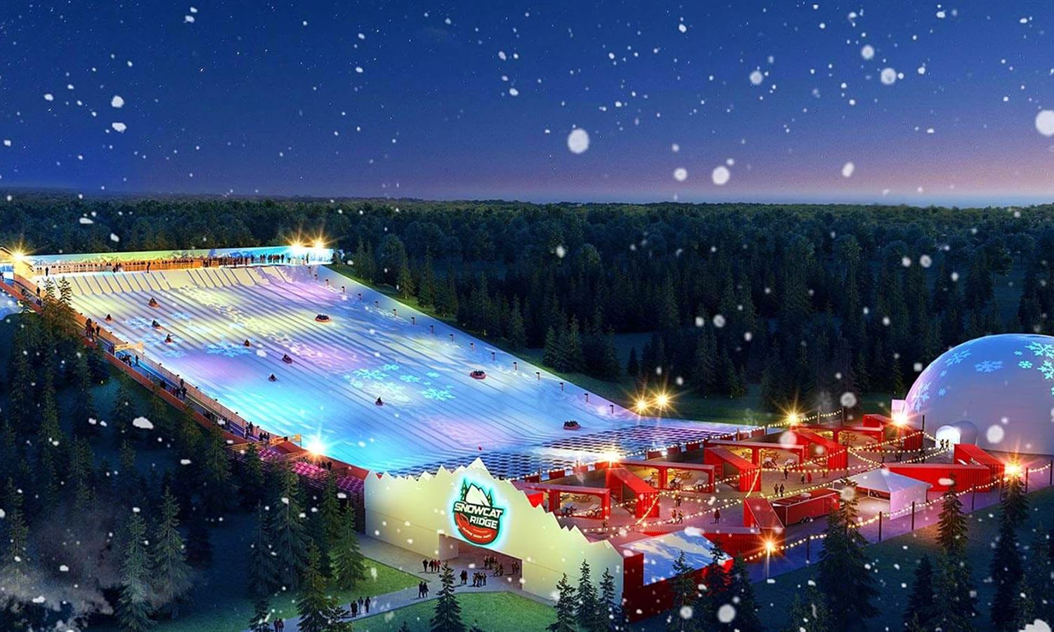 The theme park will feature snow-themed rides and activities for adults and children. The highlight is the park's massive snow tubing hill that stands at 60-feet tall and 400-feet long. A magic carpet will whisk riders and their snow tubes to the top of the hill and from there they'll be able to slide in a single, tandem, or six-person family tube down the snow-covered slope.