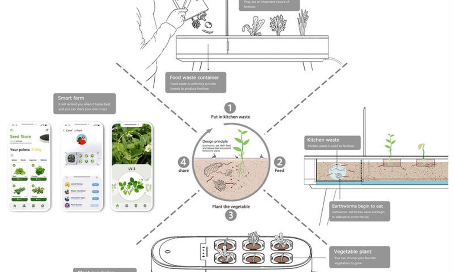 The conceptual 'Sustainable Family Farm' is a multipurpose solution for the modern home that will provide users with a way to grow their own produce from the comfort of their living space and more. The unit features a table-like design that features space for several plants to be positioned and boasts an access hatch on the opposite side that can be used for placing food waste. This enables the system to break down the food scraps and utilize them for fertilizer to keep the plants growing well throughout the year.