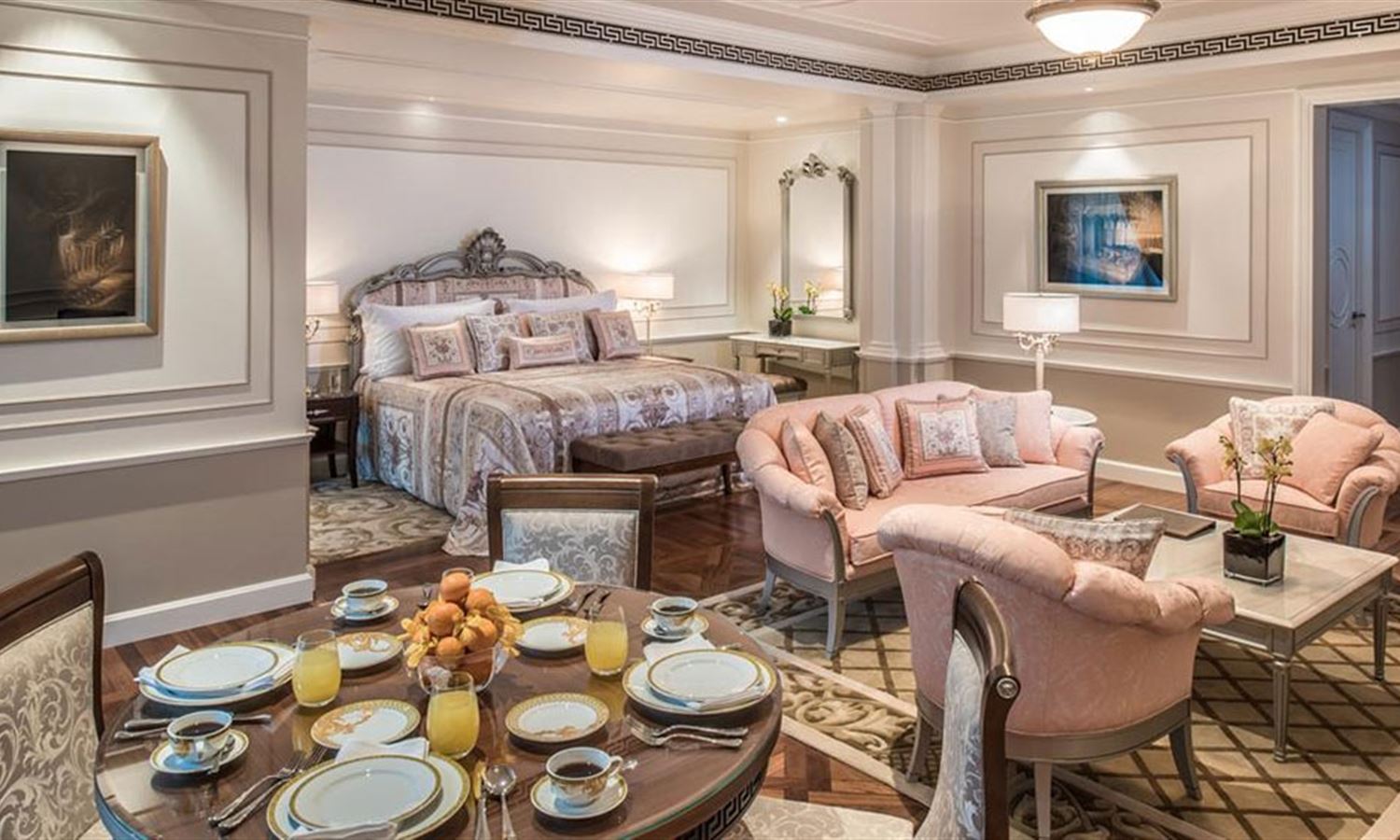 The Versace brand is omnipresent, as you’d expect, from the hand-painted friezes in the lobby to the delicate china used to serve your coffee as you wait to check-in.
