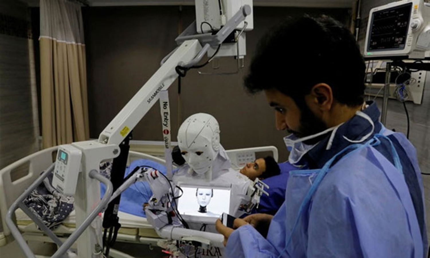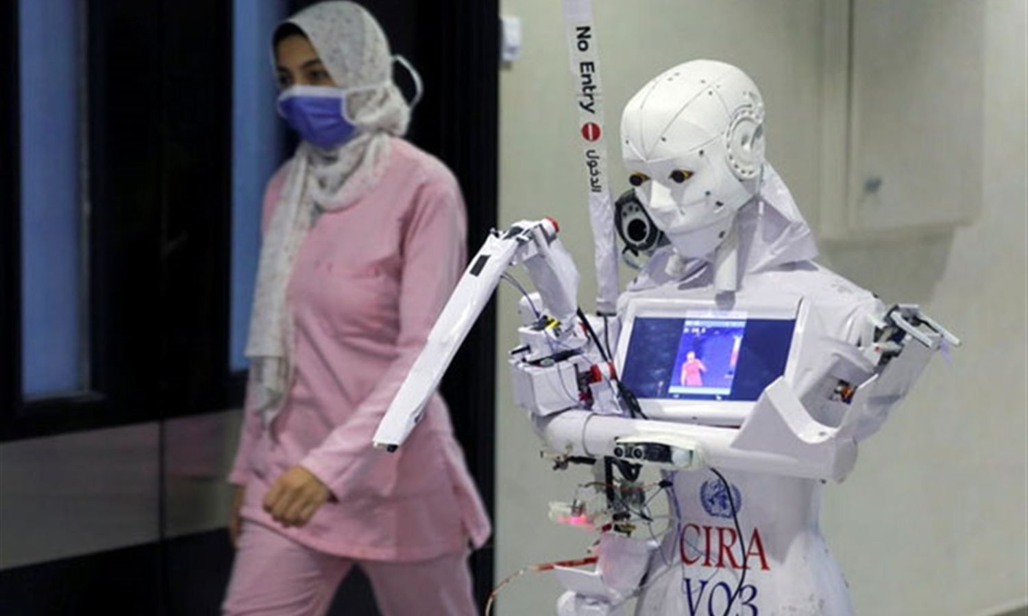 Mahmoud el-Komy, who designed the robot, called Cira-03, says it can help limit exposure to infection and prevent the transmission of the virus.