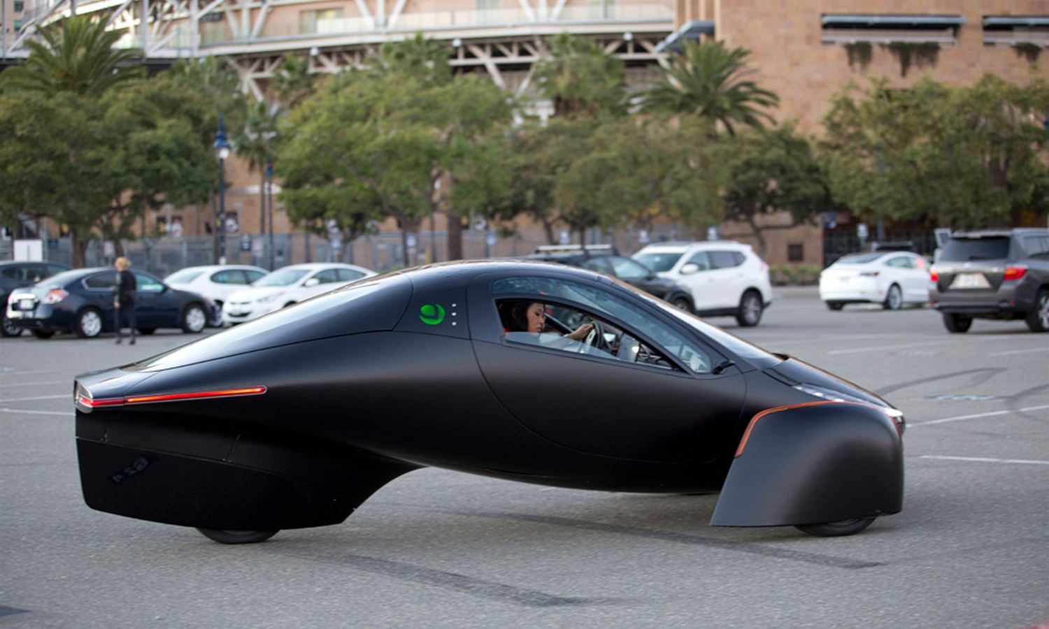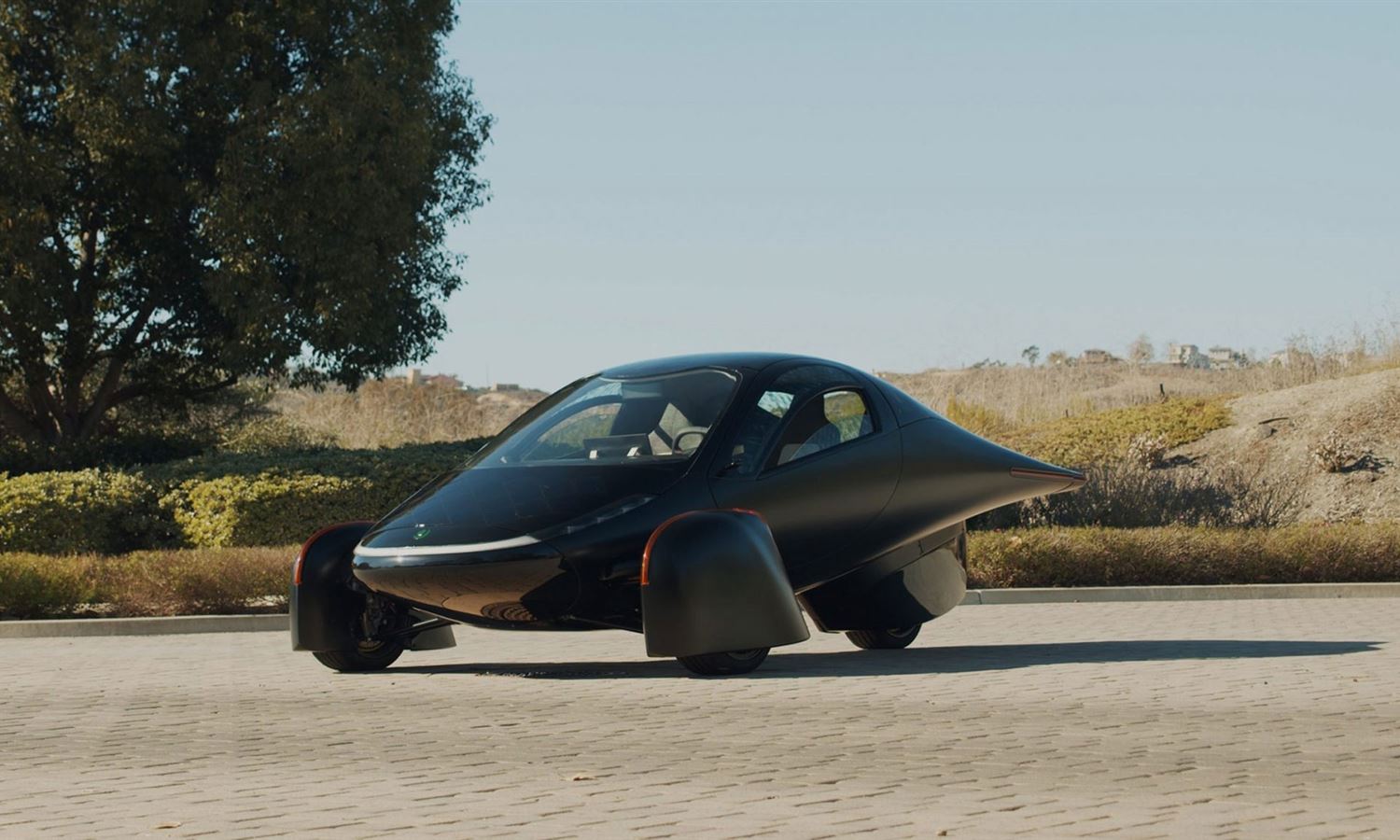 Measuring at 4.4 metres long, 2.2 metres wide and 1.4 metres high, the three-wheeled Aptera vehicle can accommodate two adults and a pet, according to the company.