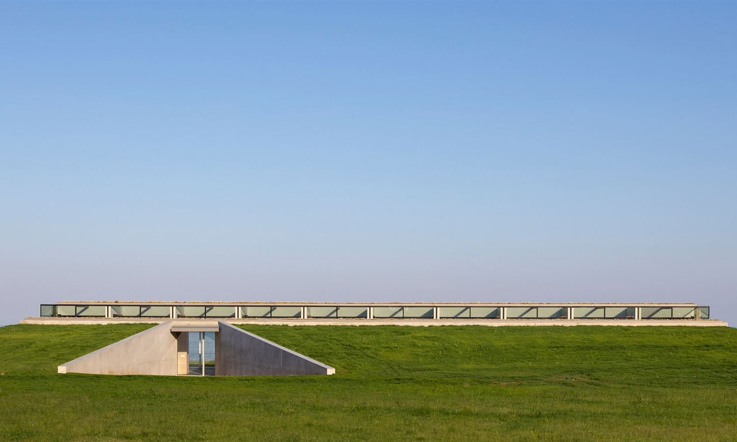 On the north, which is embedded in the hill, the team placed a dressing room, a bathroom, a kitchenette and laundry facilities.