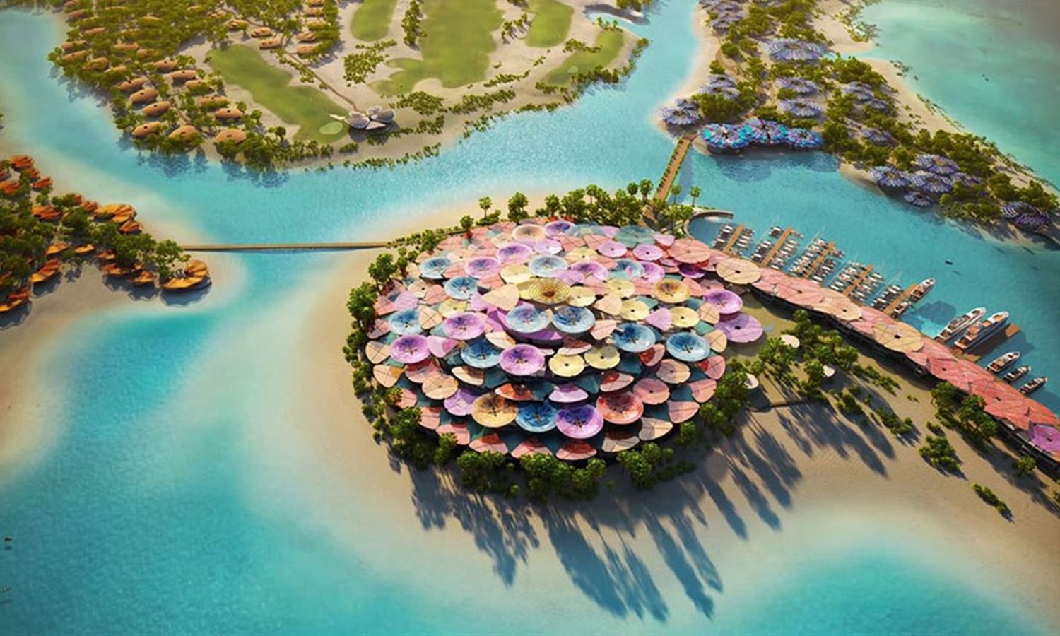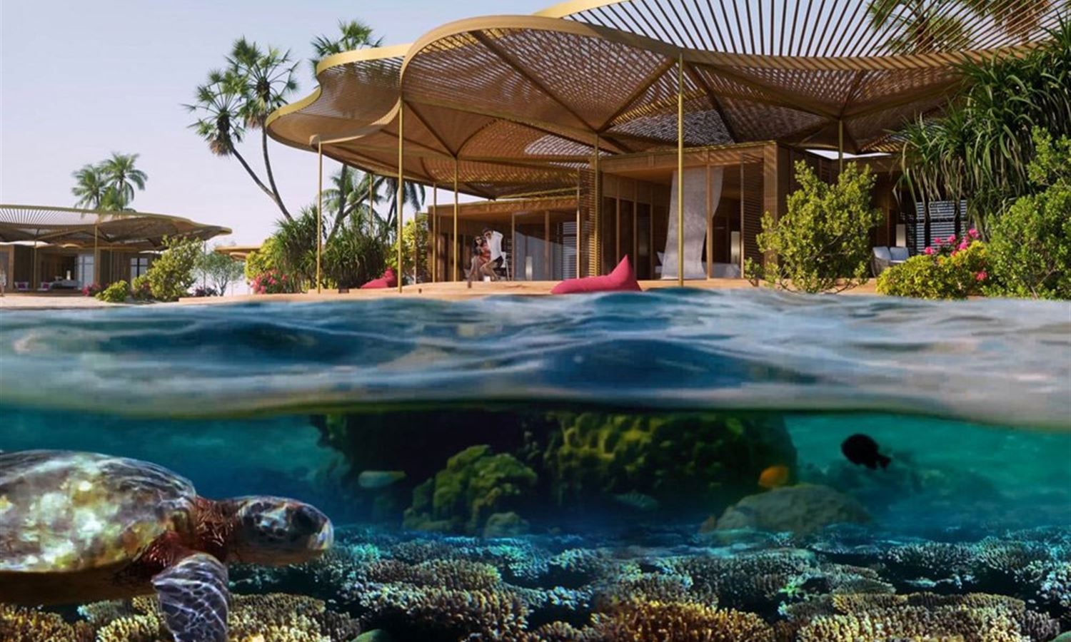 Images of the project have already been revealed, showing 11 stunning hotels on the dolphin-shaped island of Shurayrah, each designed to blend in with the natural environment, working in harmony with the island’s mangroves and vegetation while also providing additional defense from erosion.