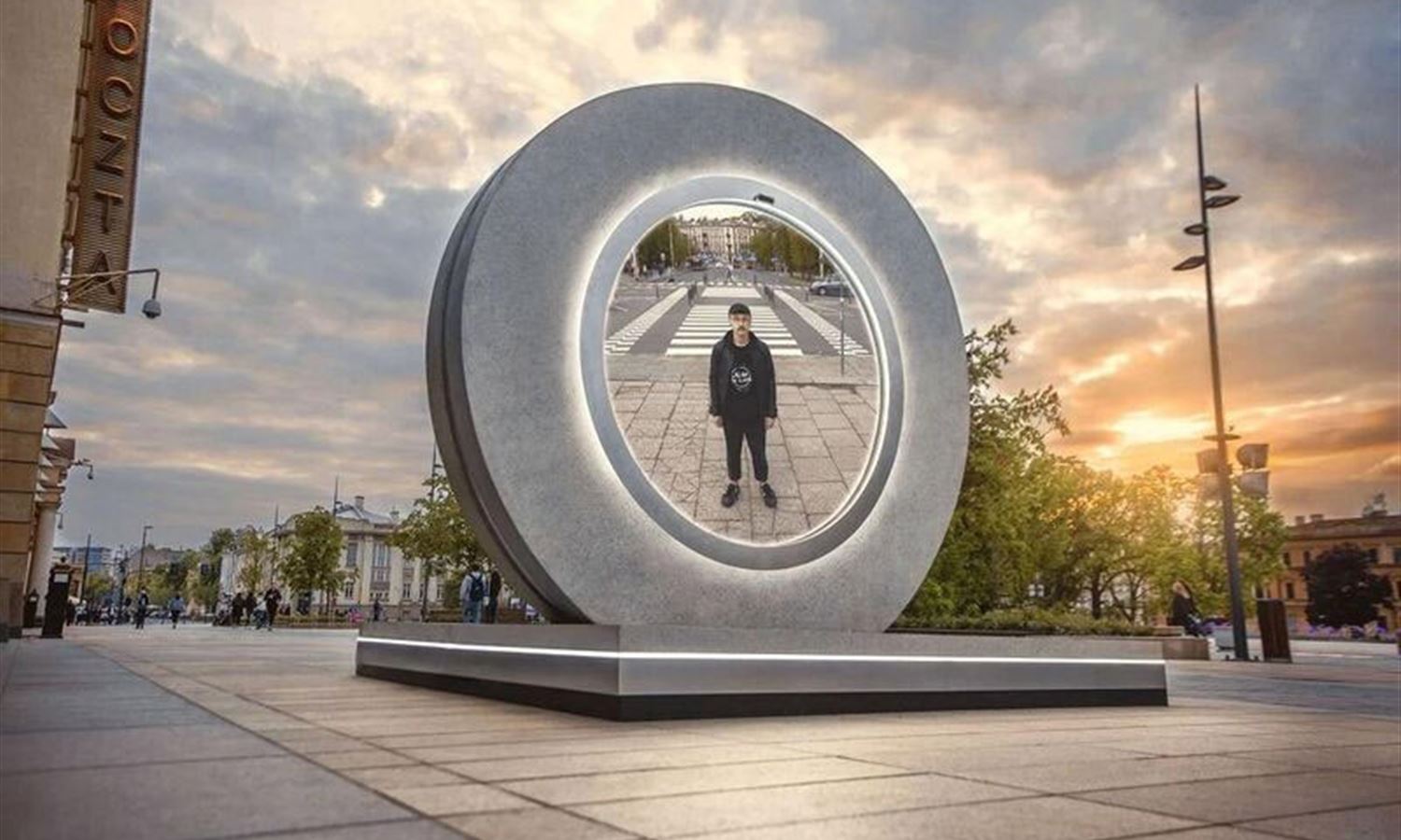 The PORTAL project uses a physical multimedia fixture to virtually connect European cities over large distances. The portals, which act like public webcams, have a futuristic, sci-fi design reminiscent of technology from Doctor Strange or Stargate. The PORTAL project uses these massive circular doors that have integrated virtual technology to connect residents in real-time over the Internet.