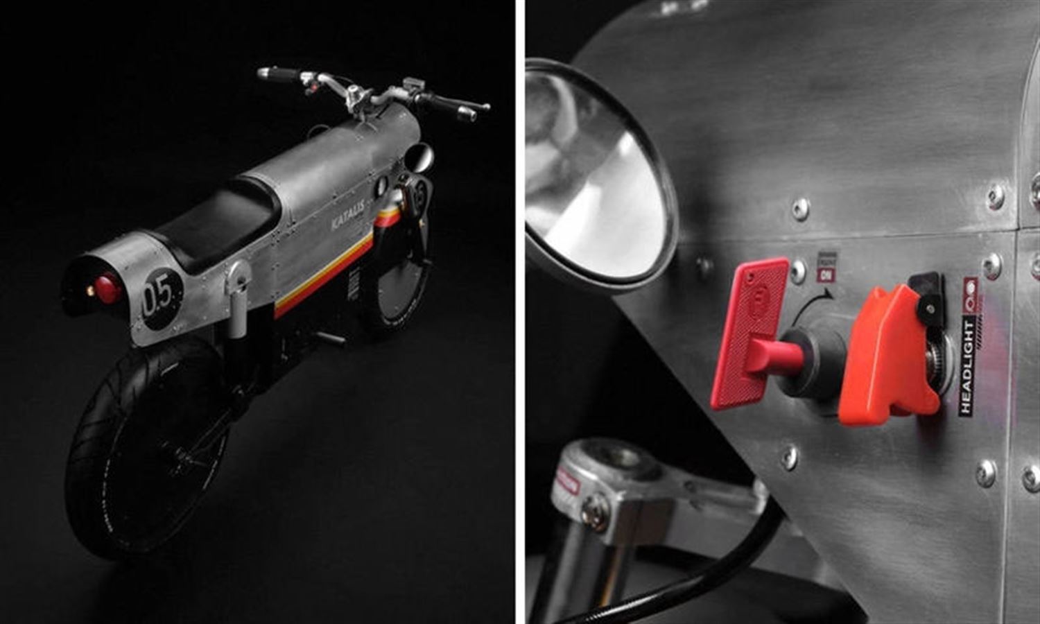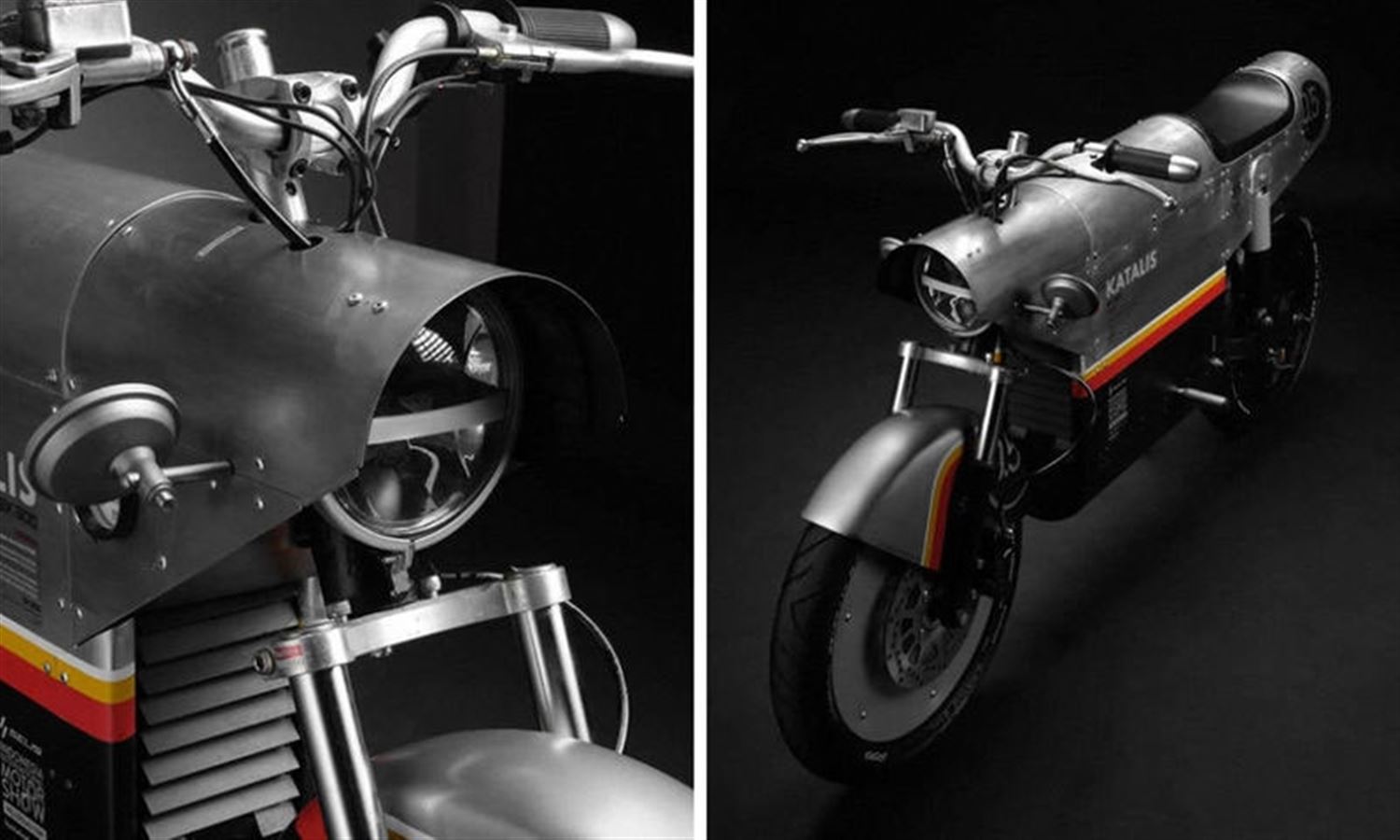 The Katallis EV.500 electric motorcycle is accented by a series of vintage finishing touches like an old-fashioned voltmeter, a turn-key starter mechanism and a covered switch for the headlight. The bike is capable of delivering up to 25 miles of riding range along with a top speed of 25mph.