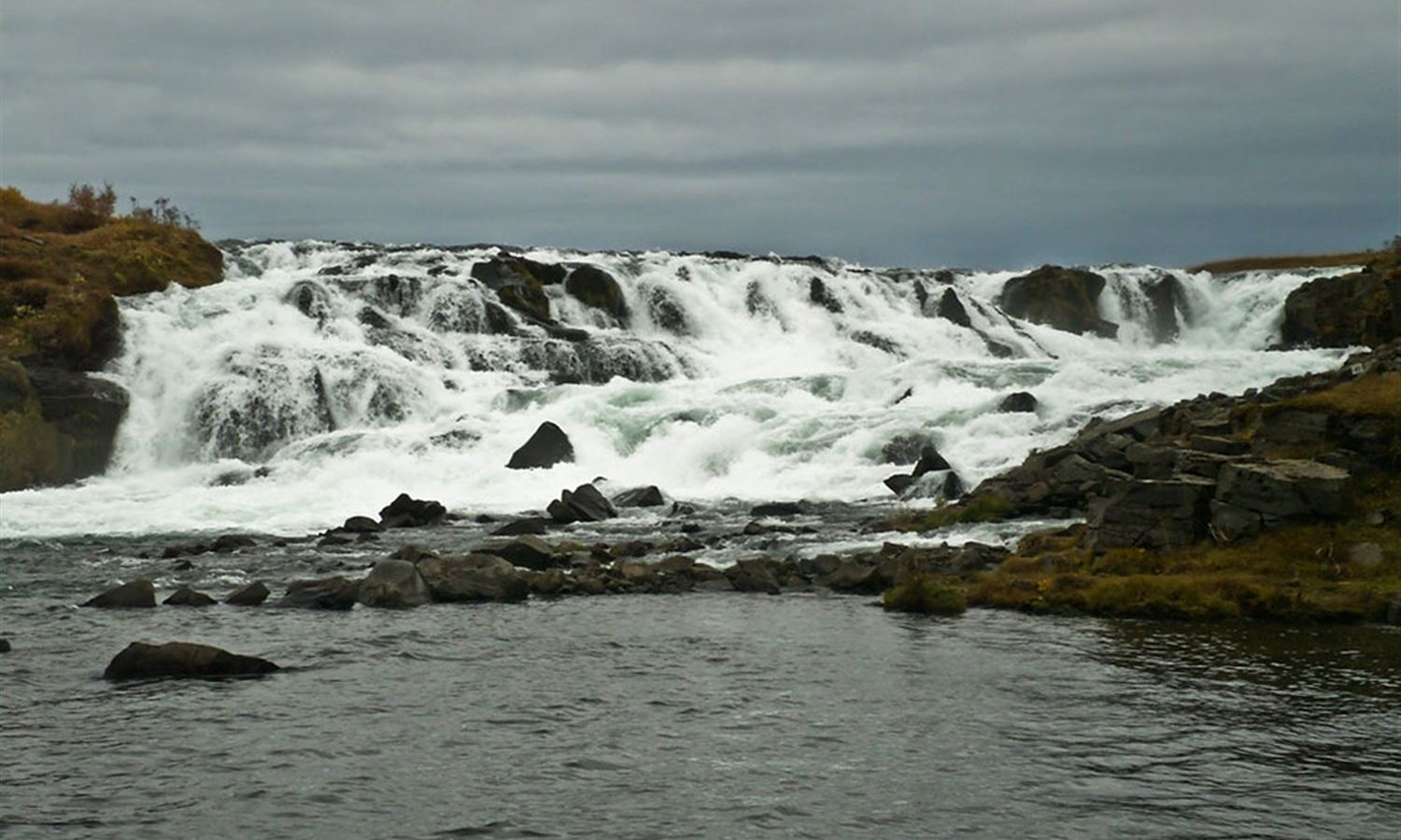 The first featured waterfall was Árbæjarfoss, about 60 miles from the capital of Reykjavik and just over eight miles from the hotel itself. This particular waterfall features concrete walls used by salmon so they can more easily move upstream to breeding grounds, according to the hotel.