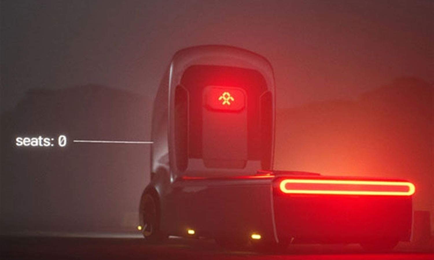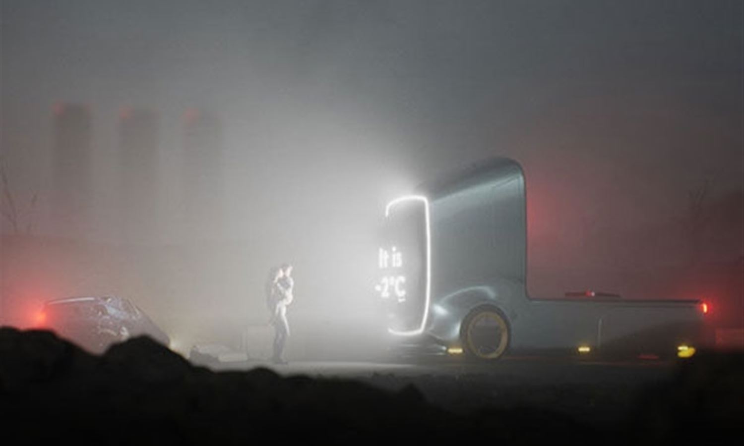 The front section of the autonomous semi-truck concept boasts a large LED projection system that will communicate with pedestrians and even opens up a new form of communication for administrators to use. This is because the screen could be used for displaying advertisements, logos, pertinent public welfare information and much more.