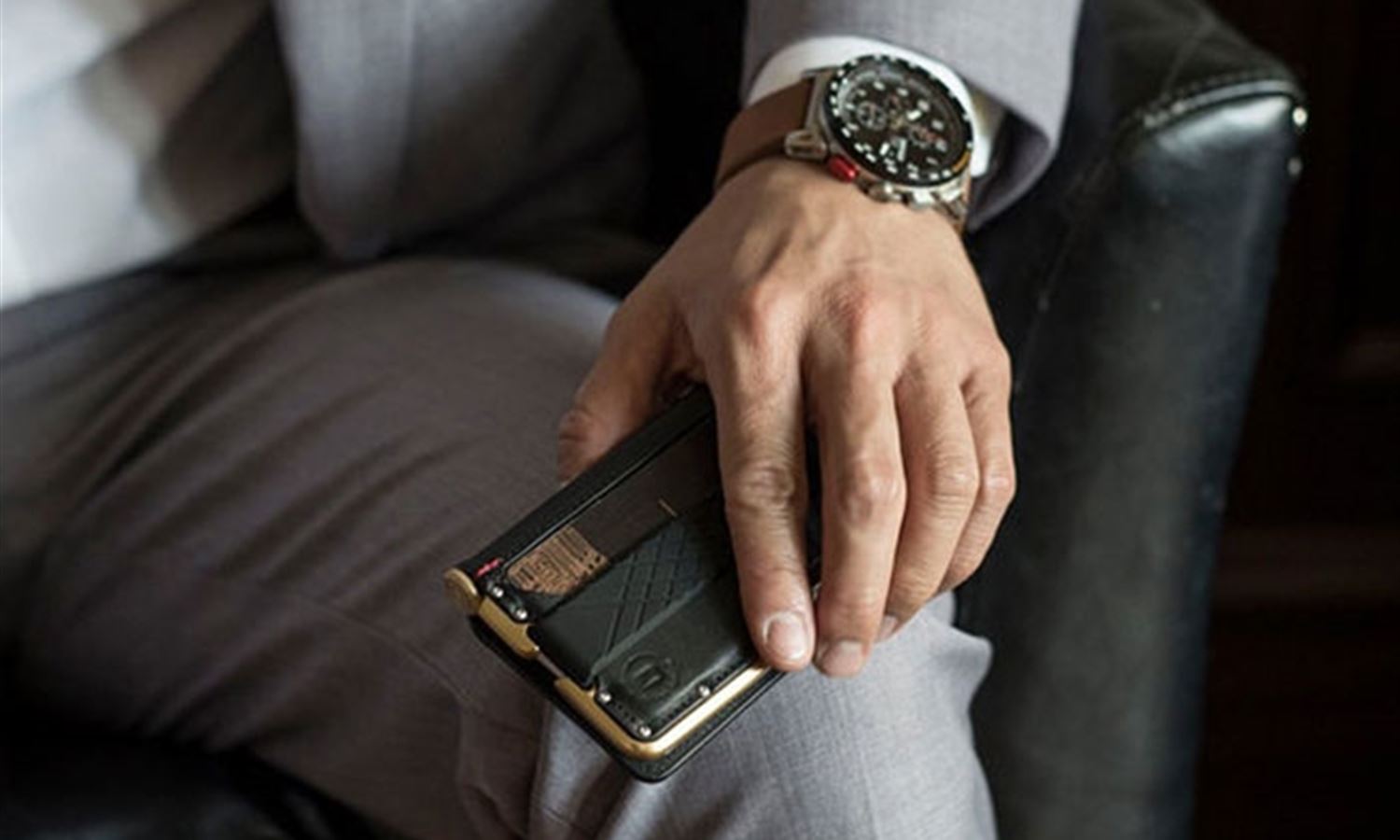 The wallet features polished gold aluminum along with an exclusive polished pen that slides into the spine of the accessory to keep it within reach at all times. The wallet includes space for cards, banknotes and more, and also features a notebook for jotting down notes or capturing essential information instead of opting for digital alternatives.