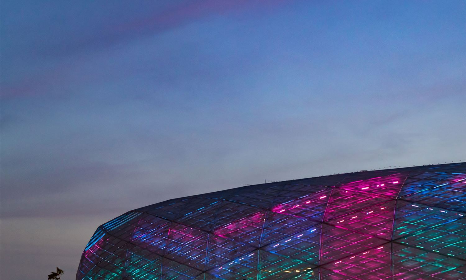 Its façade consists of a mosaic triangle pattern that takes the form of Arabic architecture, and is designed to distract the strong sunlight in the country, and the facade can be illuminated at night.