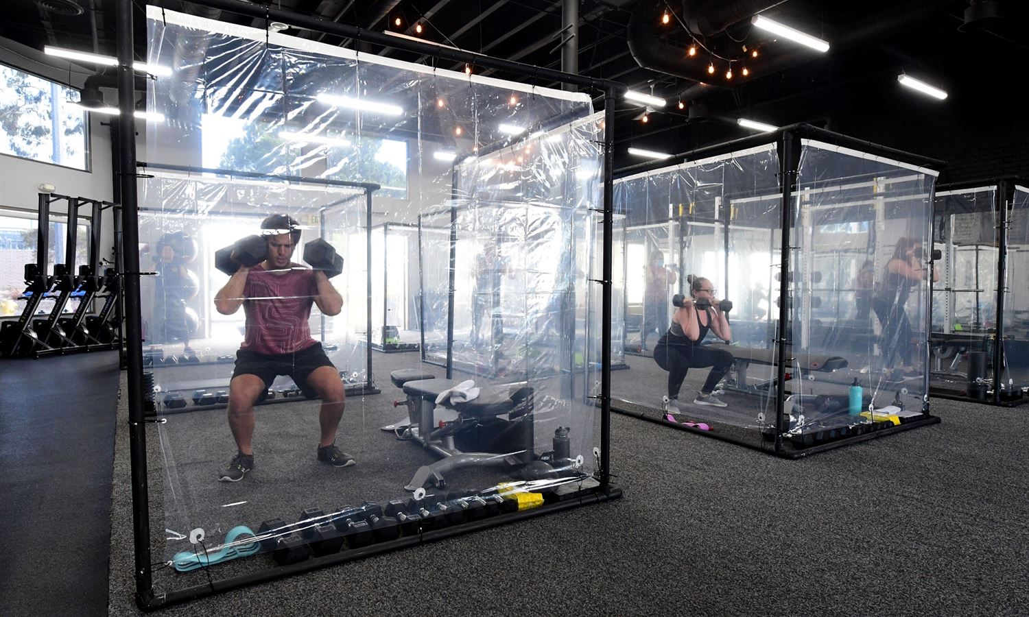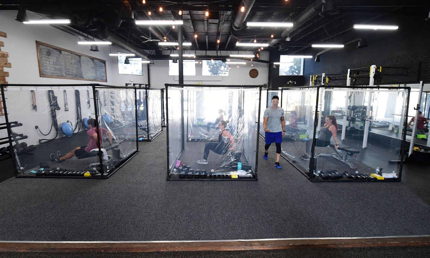 Inspire South Bay Fitness in Redondo Beach, California, introduced individual exercise pods this week, allowing gym-goers to work out separated by plastic sheets.