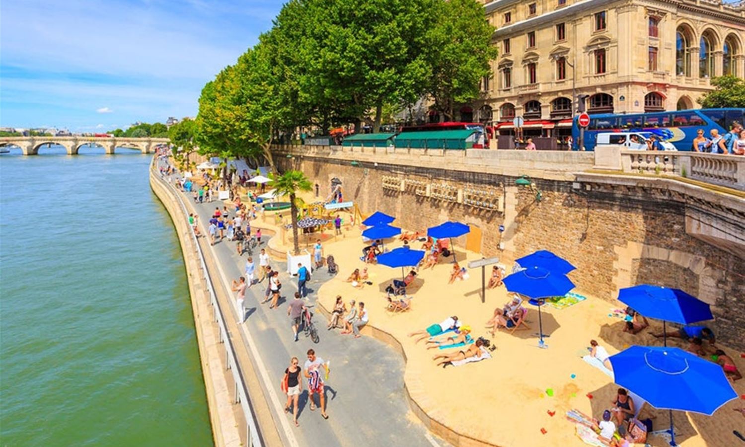 Paris Plages, an annual event organized by the French capital, creates temporary beaches along the Seine and the Bassin de la Villette during the summer.