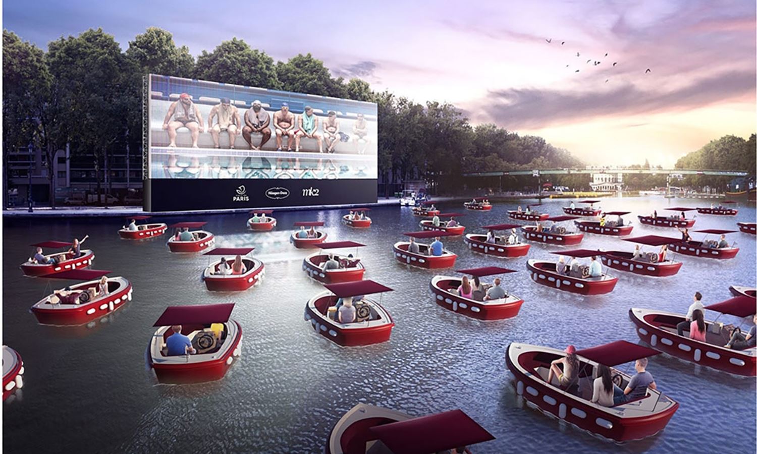 To celebrate the event, and the recent reopening of movie theaters in France after being closed due to the coronavirus, cinema chain Mk2 collaborated with Häagen-Dazs to create "Cinéma sur l'Eau" (cinema on the water).