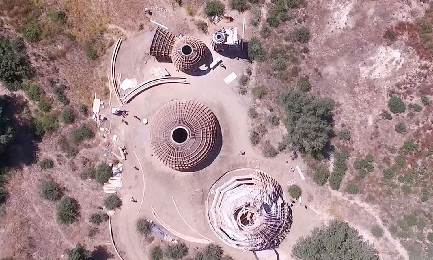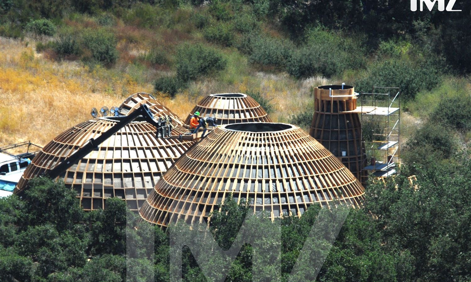 West posted the photo to Twitter showed several unfinished structures with curvilinear floor plans, wooden frames and domed metalwork.