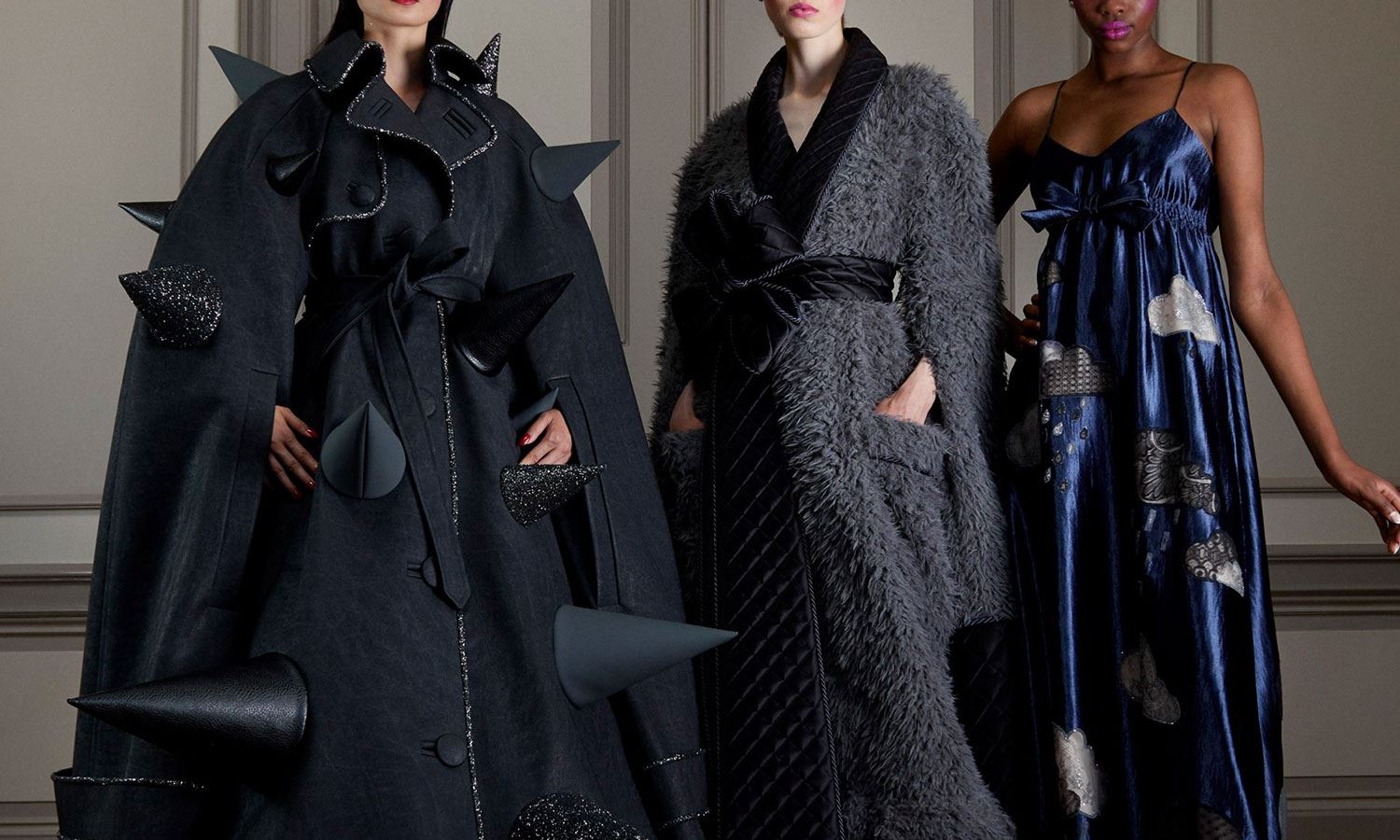 The collection, titled Change, comprises three mini-wardrobes that all feature three looks including a nightgown, a dressing gown, and a coat.