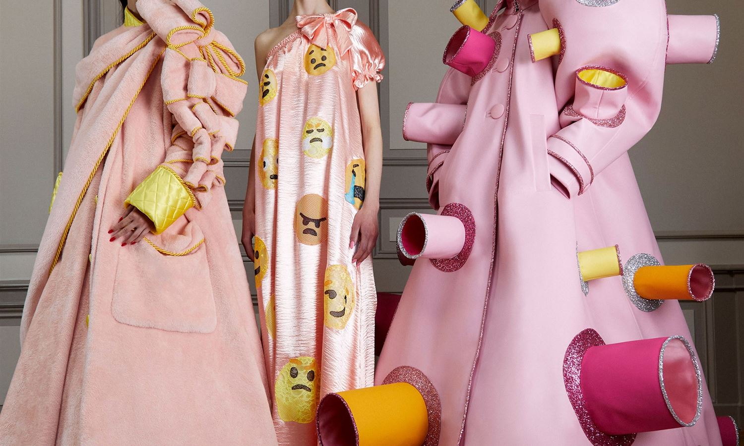 Viktor & Rolf presents a high-fashion take on coronavirus with its Autumn/Winter 2020 collection, featuring silky nightgowns emblazoned with emojis and "unapproachable" coats covered in spikes and tubes.