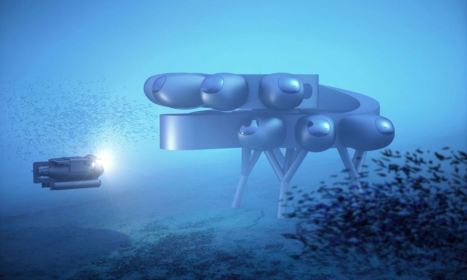 Swiss designer Behar designed the station, which is called Proteus, for the Fabien Cousteau Ocean Learning Center. It will have its own greenhouse to allow scientists to grow their own food 18 metres under the sea near Curaçao, an island in the Caribbean.