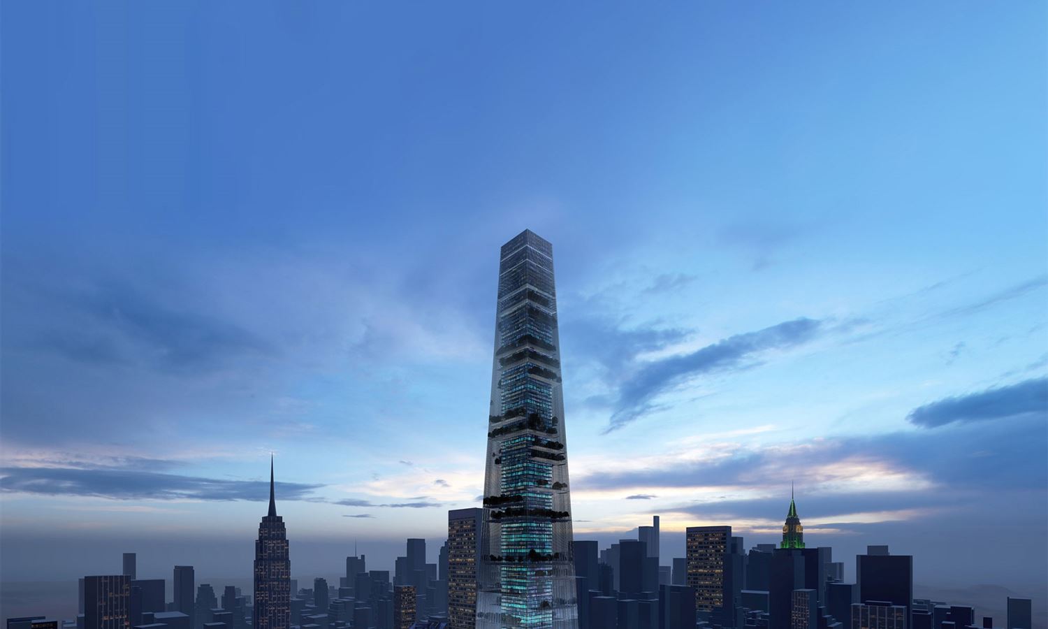 Designed for an imaginary urban plot in New York City measuring 80 by 130 metres, the scheme uses geothermal energy and photovoltaic panels for power and would use a rainwater recovery system and water use management for water.